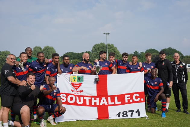 Southall's players celebrate with their trophy