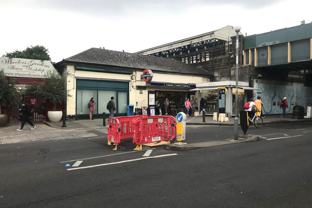 The hole appeared in the road outside the entrance to the tube station at around 7.30pm on Wednesday evening (22 June). It was covered over the following morning by Hounslow Highways who have placed barriers around the collapsed surface.