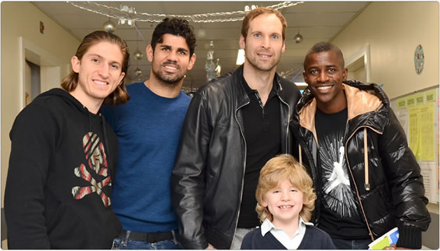 The football stars including club captain John Terry, top scorer Diego Costa and World Cup winner Andre Schurrle brought presents and merchandise for children and spent time talking and taking photos with patients and their families on December 9.