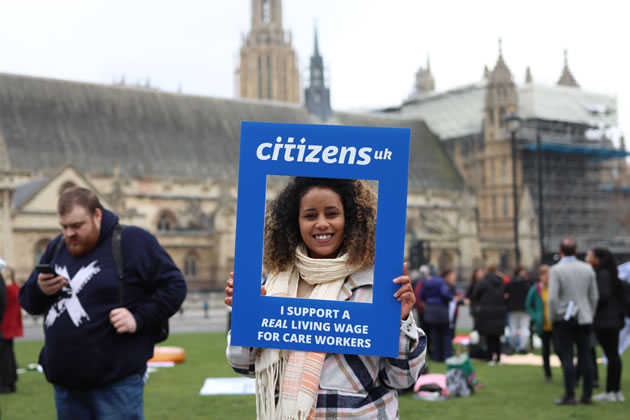 On Wednesday, 200 members of community organising group Citizens UK gathered in Parliament Square to call on MPs to support a real living wage for care workers in England.